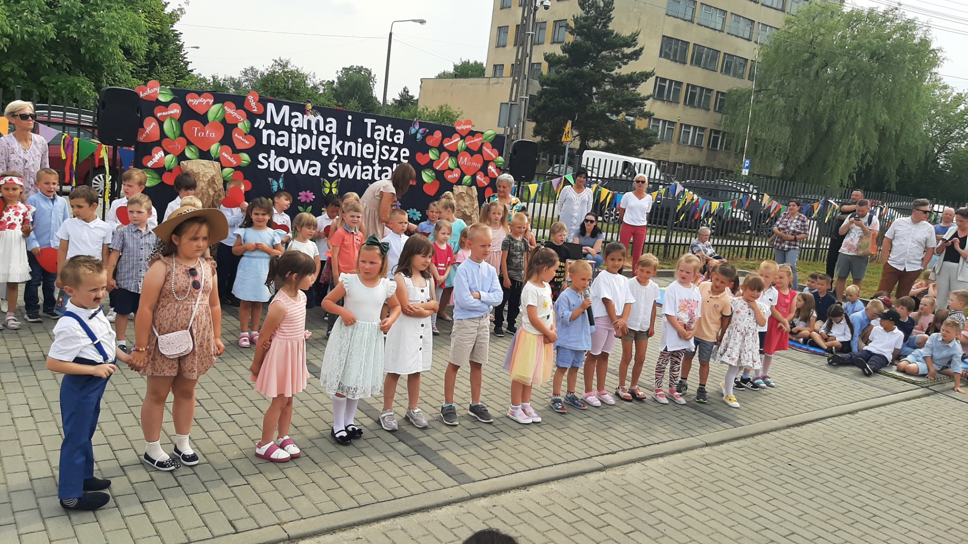 występy przedszkolaków na pikniku rodzinnym, powitanie rodziców