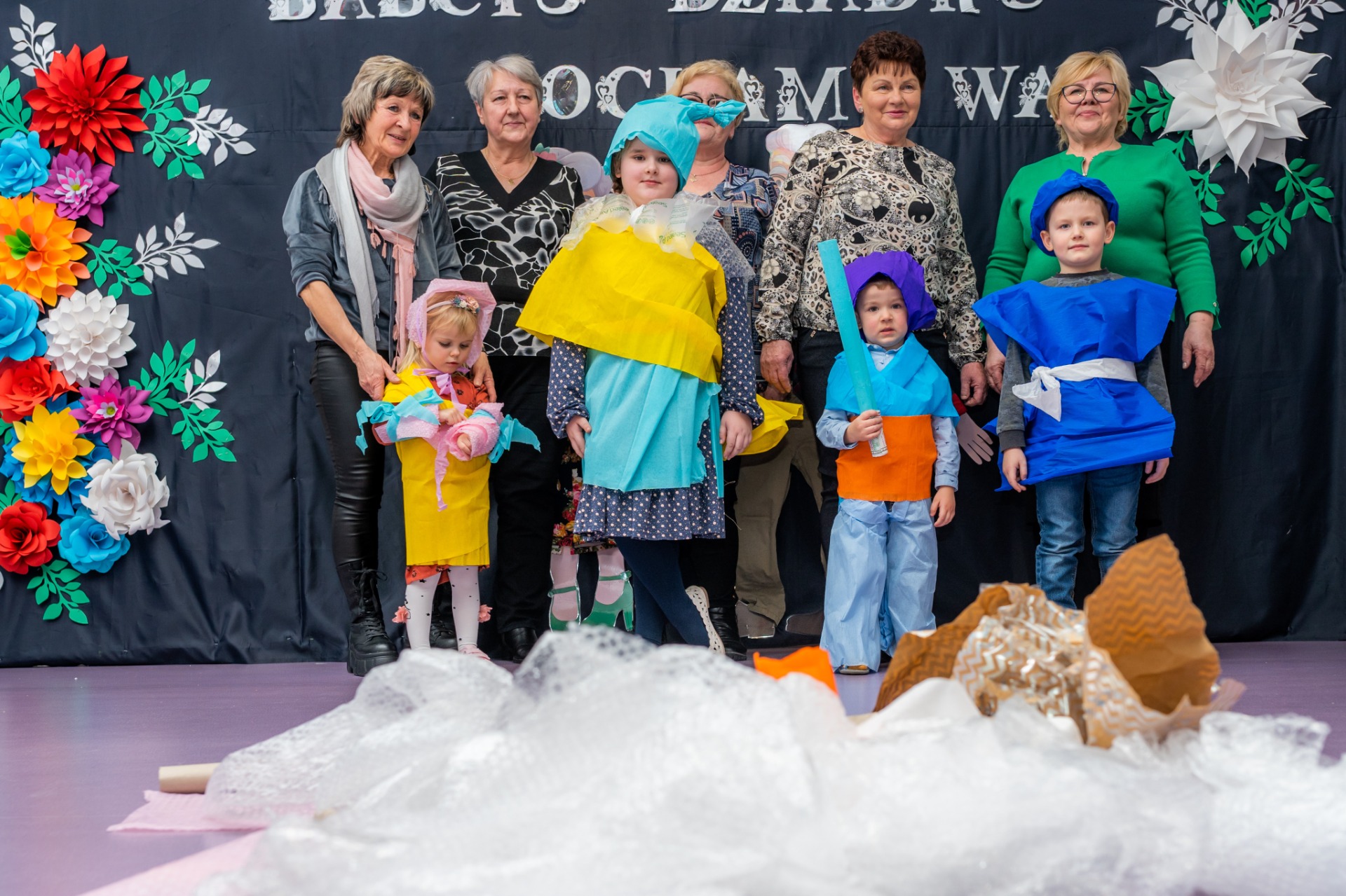 babcie biorące udział z wnukami w konkursie na ekologiczny strój