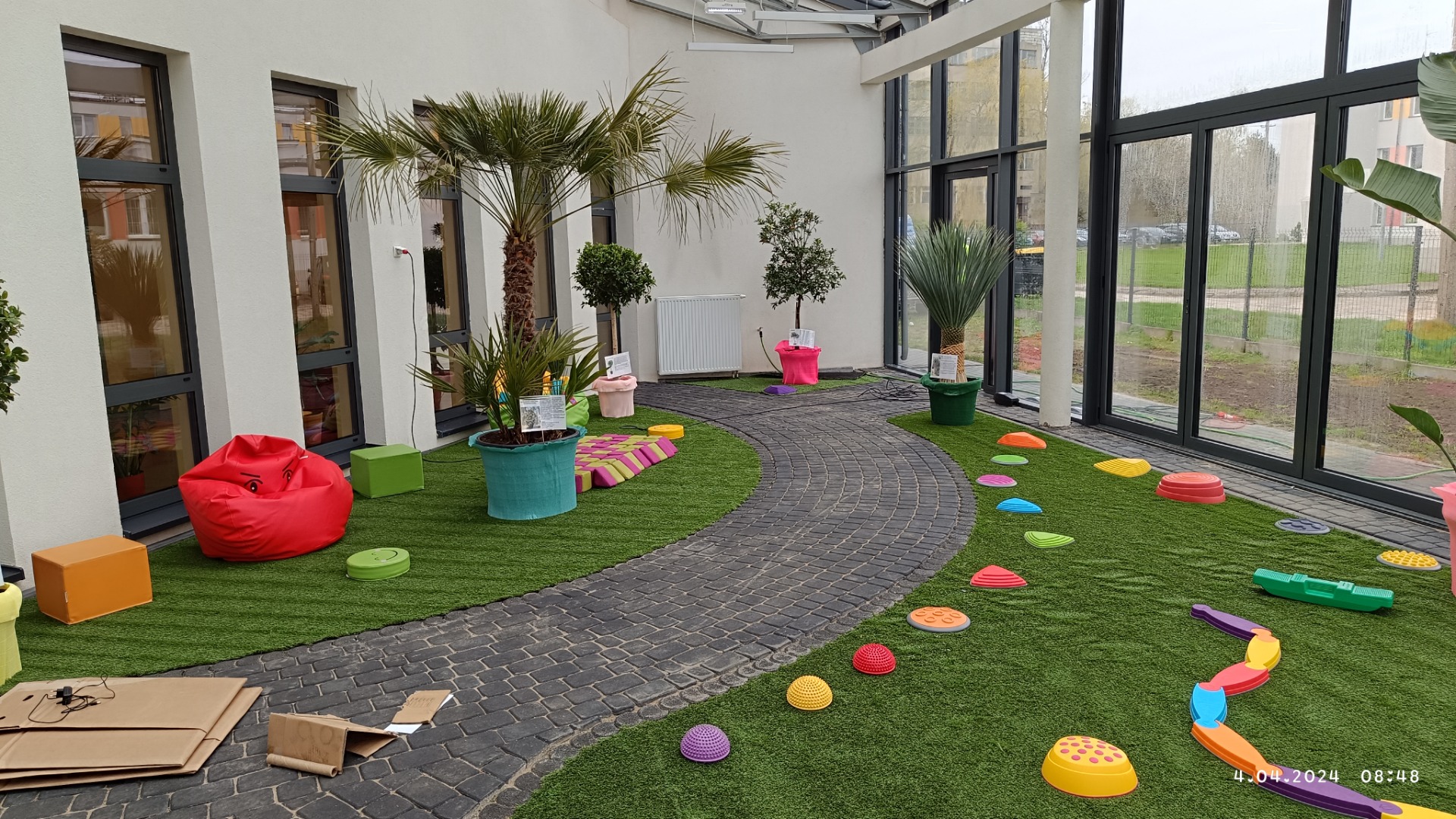 ogród zimowy dla przedszkolaków. W tle wielkie palmy