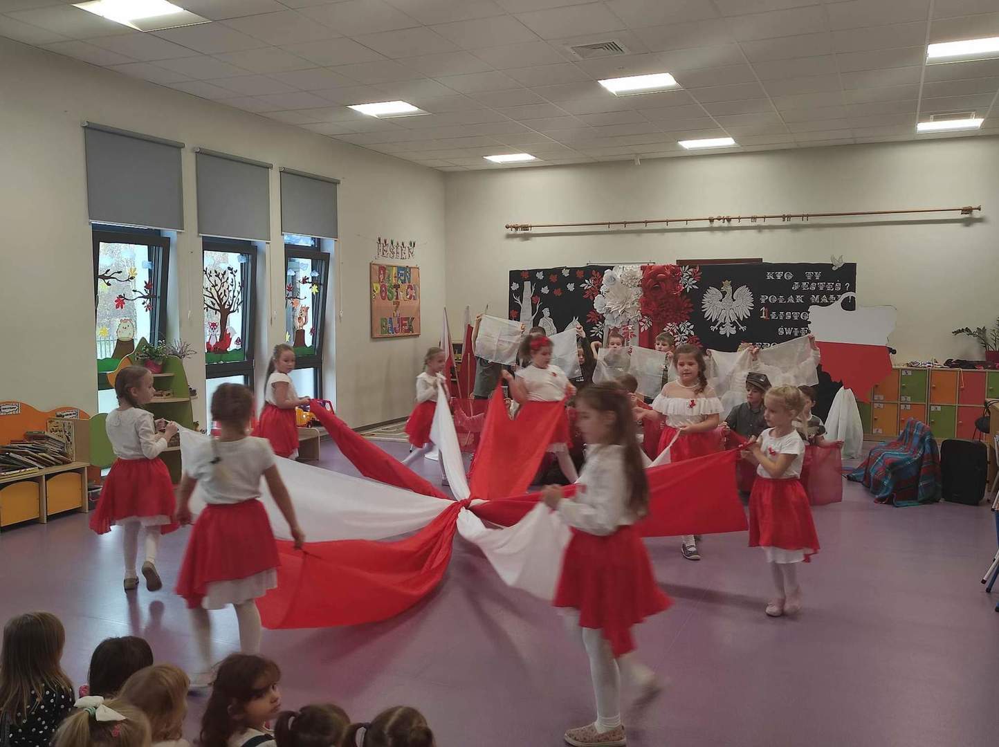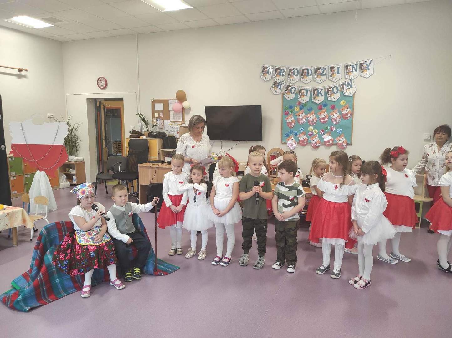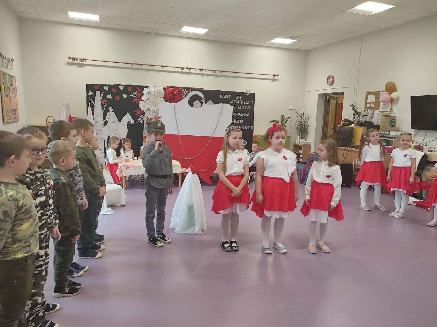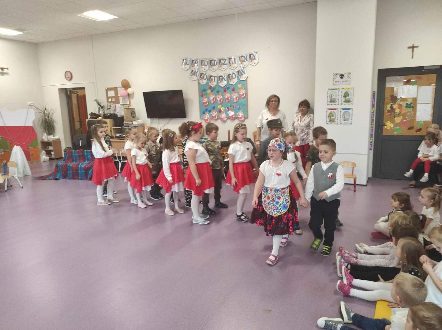 Dzieci z grupy Sówki tańcem, słowem i piosenką oddały szacunek symbolom narodowym, symbolom walki o wolność i zwycięstwo oraz okazały miłość do Ojczyzny.