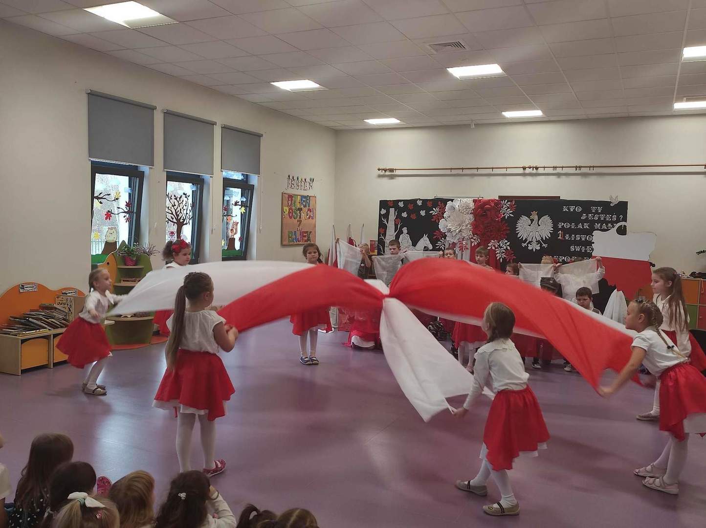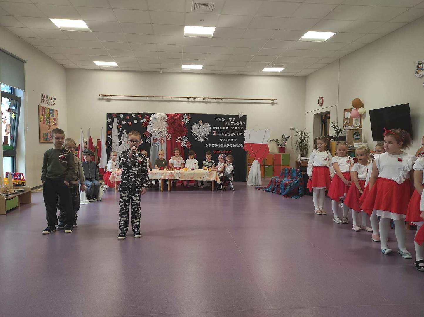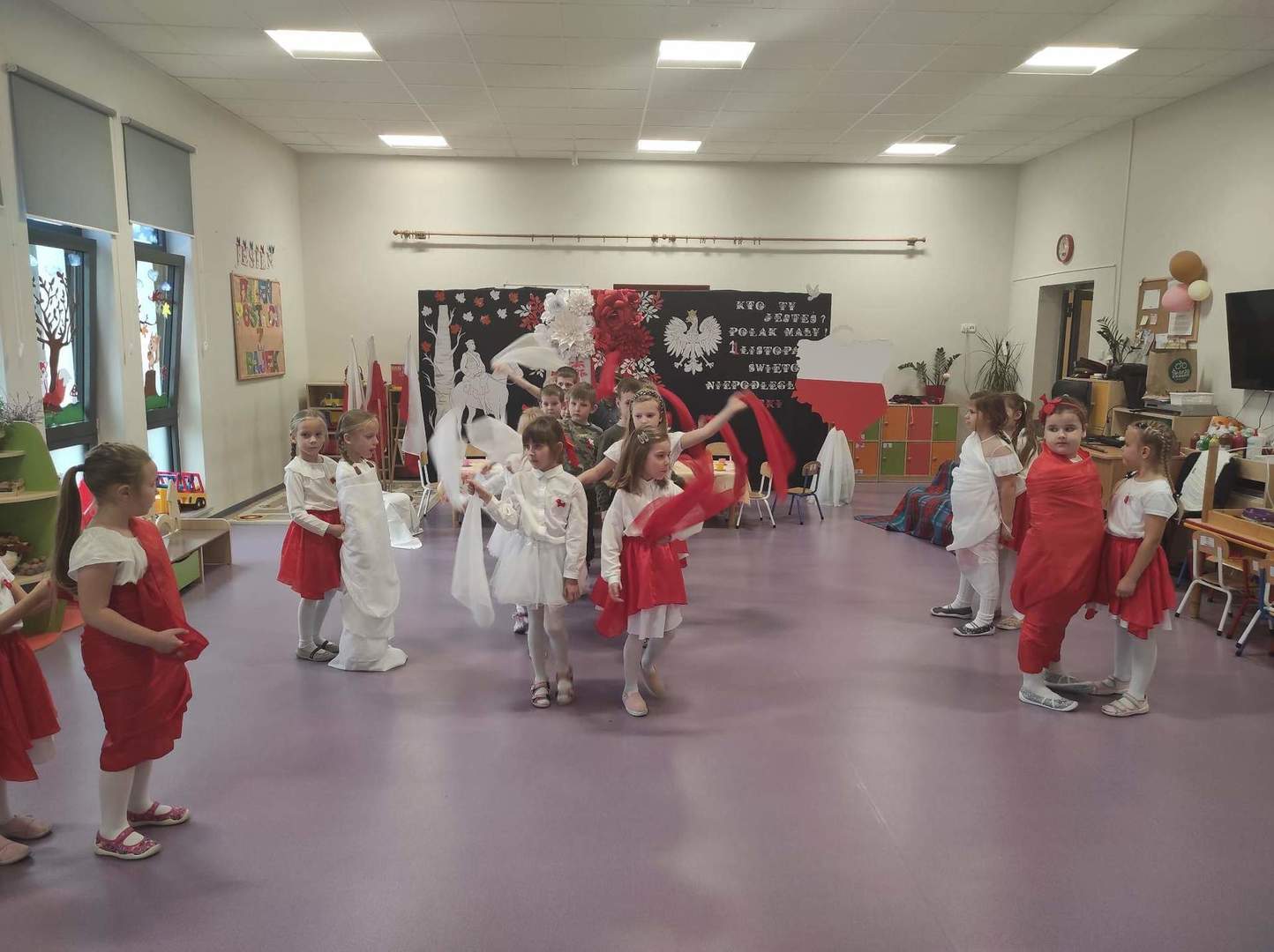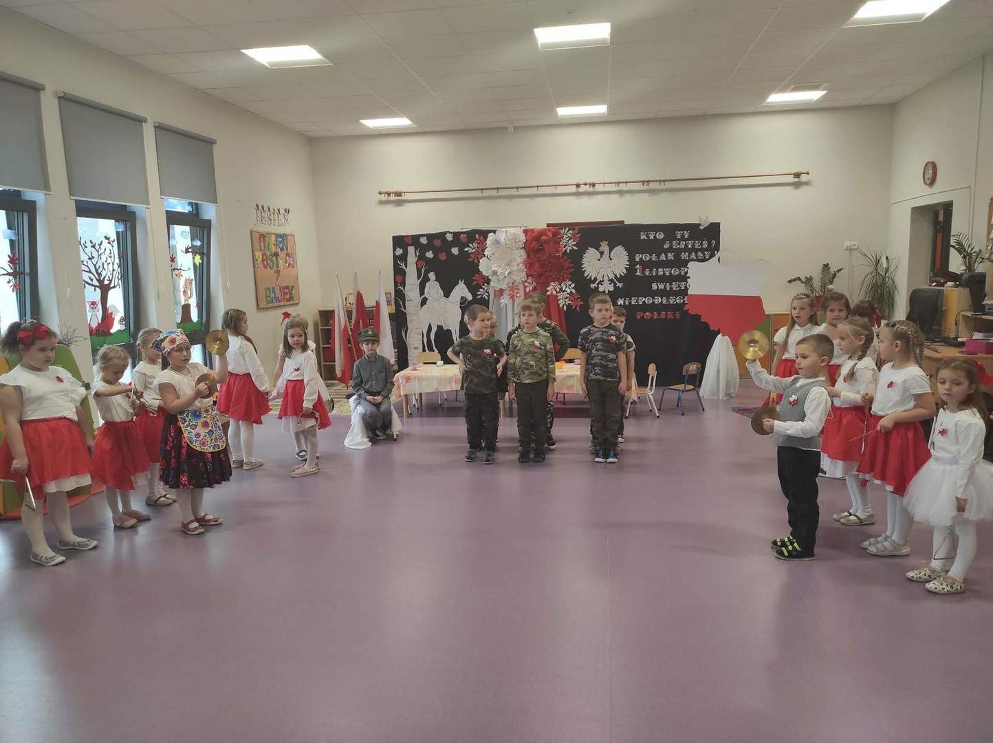 Dzieci z grupy Sówki tańcem, słowem i piosenką oddały szacunek symbolom narodowym, symbolom walki o wolność i zwycięstwo oraz okazały miłość do Ojczyzny.