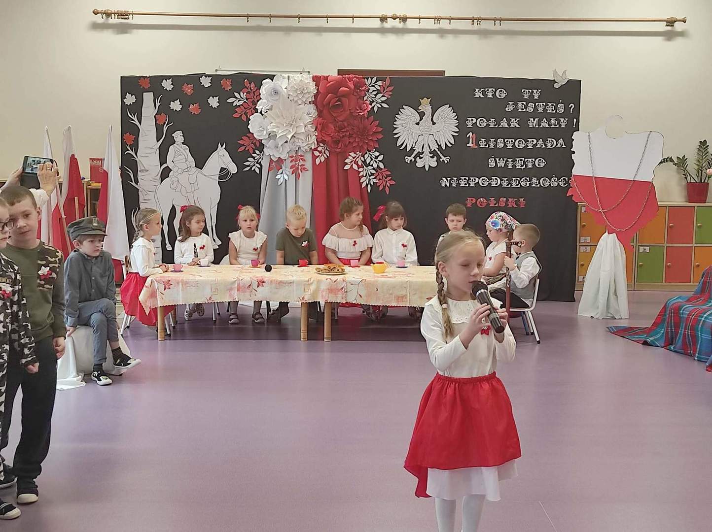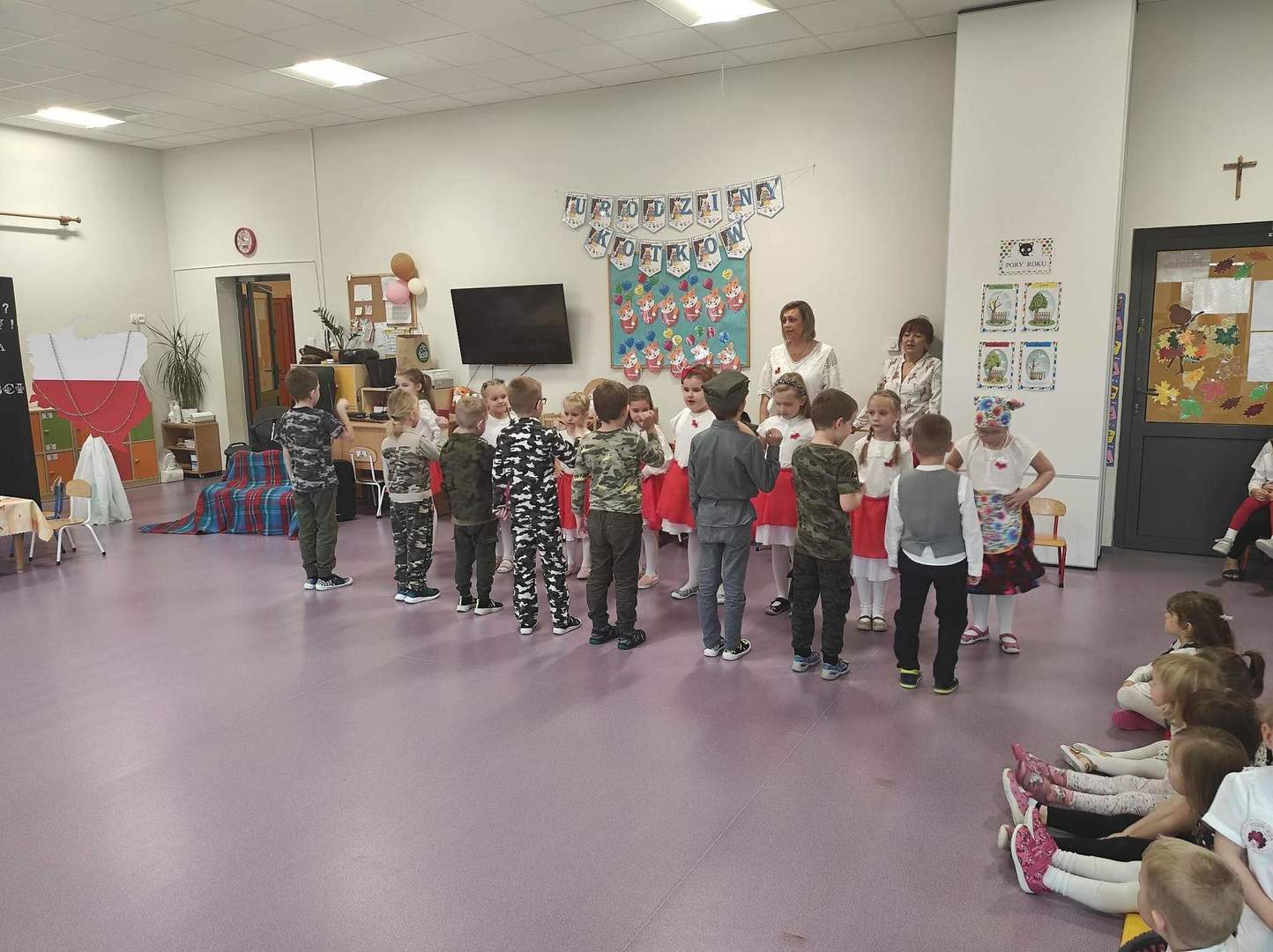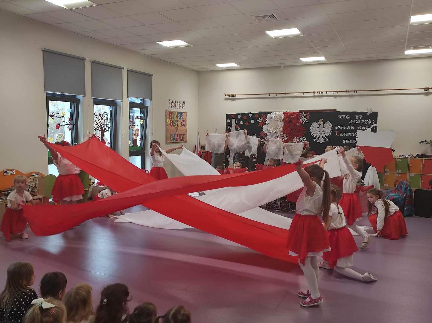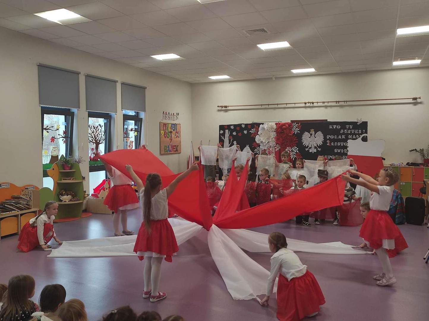 Dzieci z grupy Sówki tańcem, słowem i piosenką oddały szacunek symbolom narodowym, symbolom walki o wolność i zwycięstwo oraz okazały miłość do Ojczyzny.