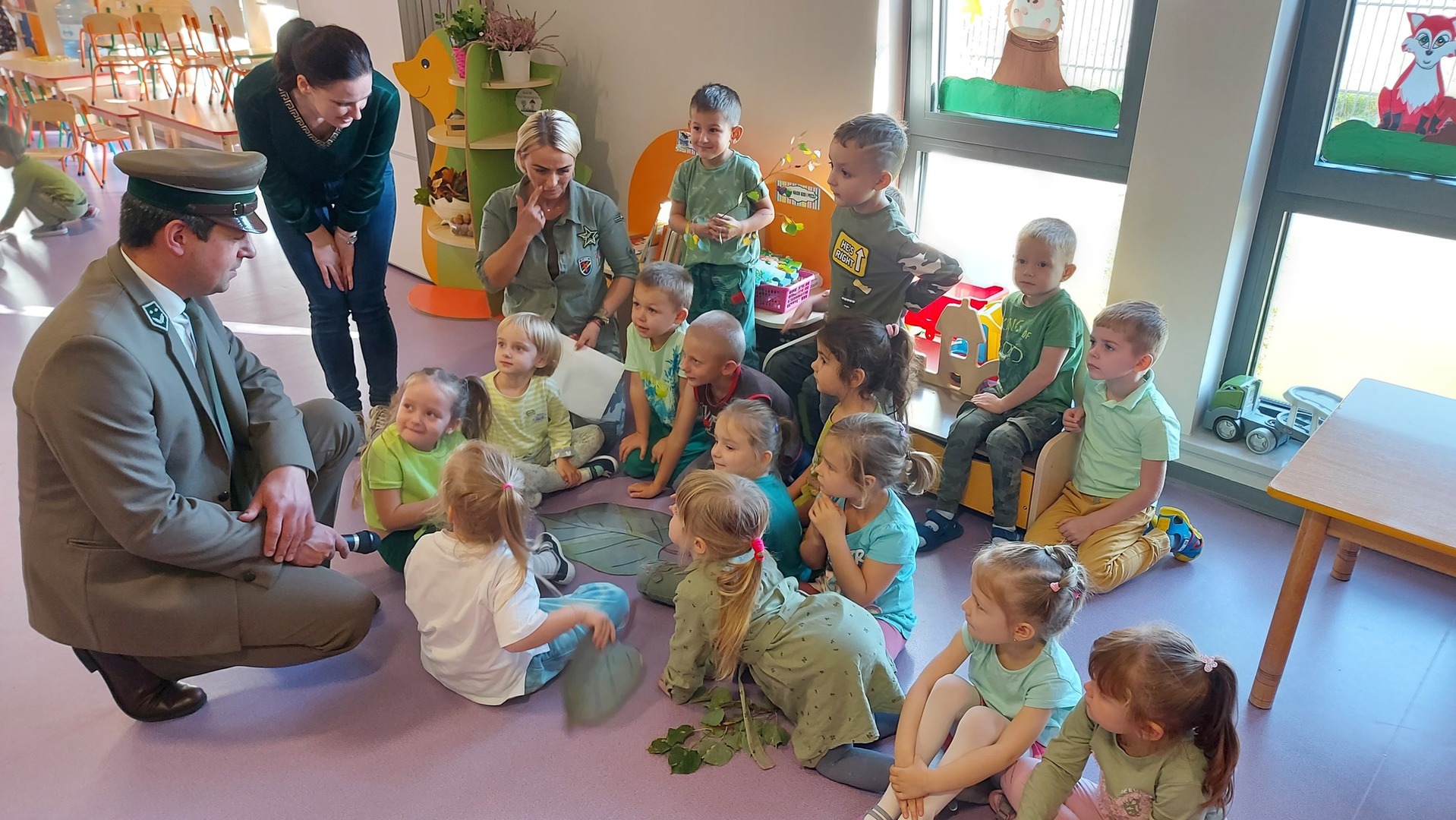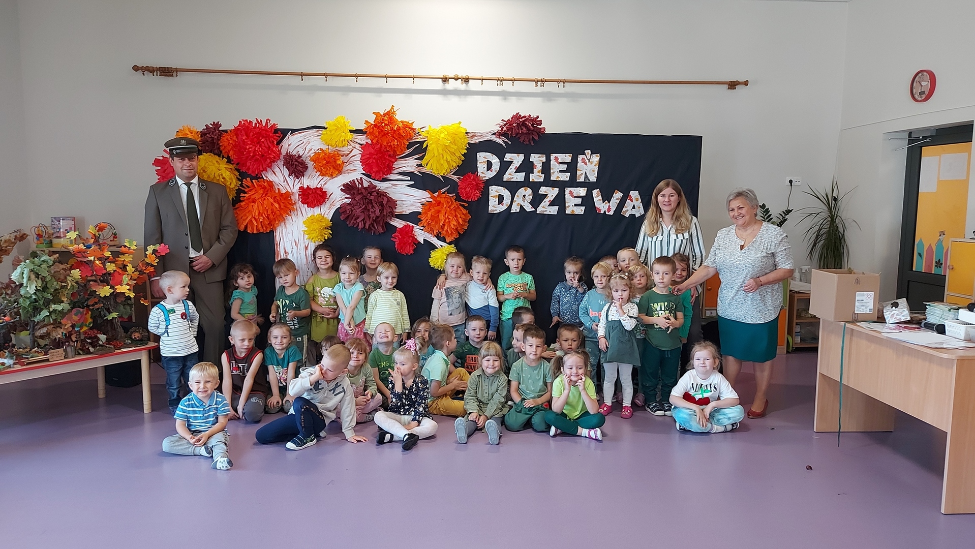 Z okazji Dnia Drzewa 10 października odwiedził nas Pan leśnik Michał Pająk z Nadleśnictwa Brzeziny. Podczas spotkania dzieci poznały gatunki drzew, ich wygląd i owoce. Ponadto przedszkolaki aktywnie brały udział w zabawach i konkursach, wyrecytowały również wiersz pt.: Jesienne drzewa". Na koniec spotkania wszystkie dzieci wspolnie z Panem leśnikiem sadziły drzewa lipowe. Może będzie to doskonała podpowiedź na nazwe naszego przedszkola? "Przedszkole pod lipami".. Taka piękna nazwa naszego przedszkola z pewnością wszystkim by się spodobała.