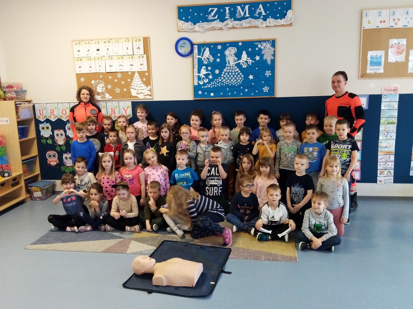Dzieci nauczyły się, jak wygląda pozycja boczna ustalona (inaczej zwana bezpieczną) oraz mogły obserwować, w jaki sposób wykonuje się sztuczne oddychanie (demonstracja na fantomach). Chętne przedszkolaki mogły próbować same udzielać pierwszej pomocy pod bacznym okiem instruktora.