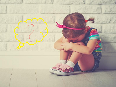 dziecko siedzące ze skulonymi nogami głowa oparta na kolanach