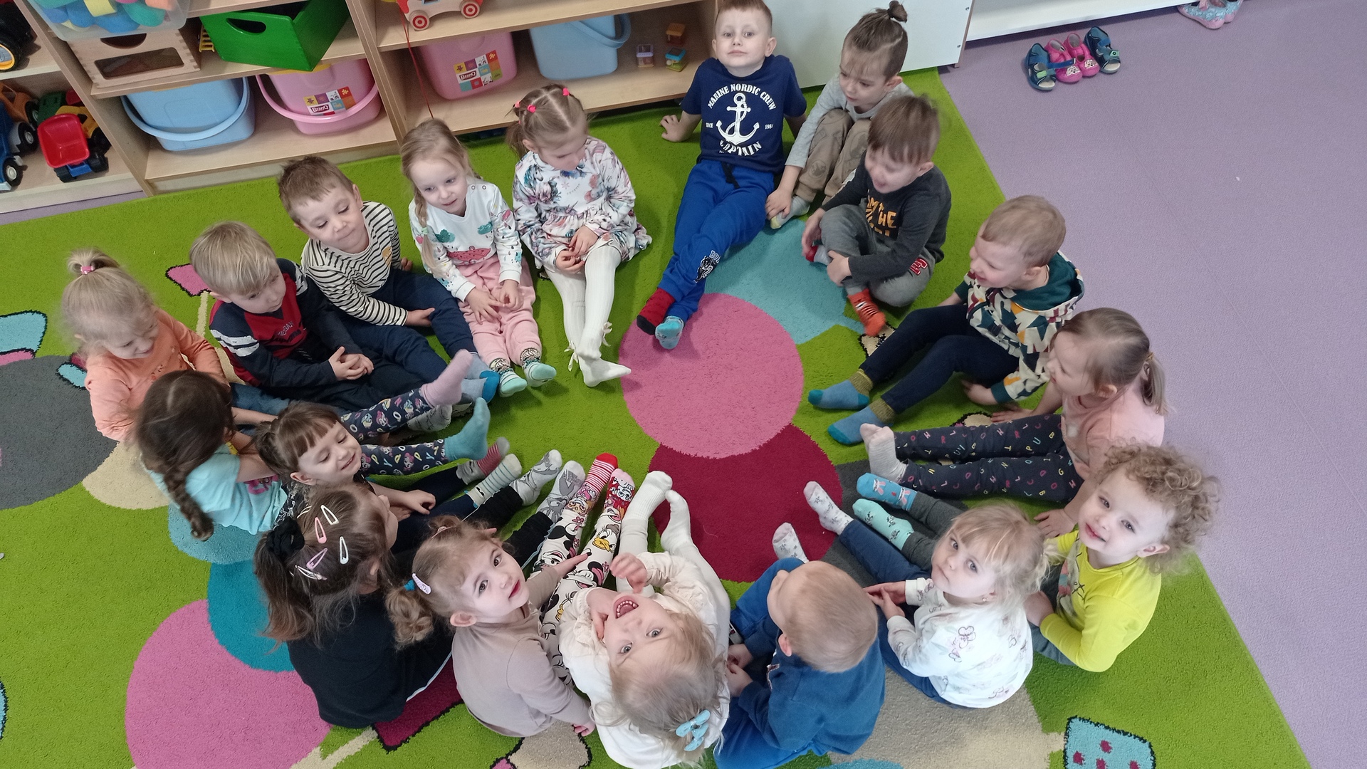 Wszystkie przedszkolaki, pracownicy przedszkola przyłączyliśmy się do akcji poprzez założenie skarpetek w różnych,wesołych kolorach – w paski, w kropki,pstrokate,