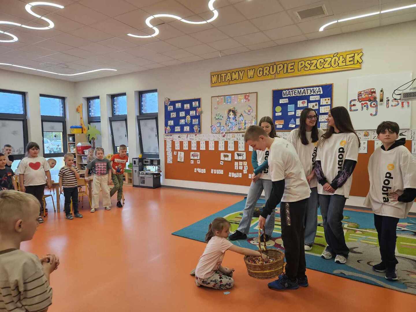 12 KWIETNIA odwiedzili nas wolontariusze Szkolnego Koła Caritas ze Szkoły Podstawowej nr2 w Koluszkach wraz z opiekunem Panią Mirosława Krajewską - Warszewik. Przedszkolaki ze wszystkich grup obdarowane zostały słodkim cukierkiem. Była także wspólna zabawa w Ogrodzie Zimowym i filgoraju.